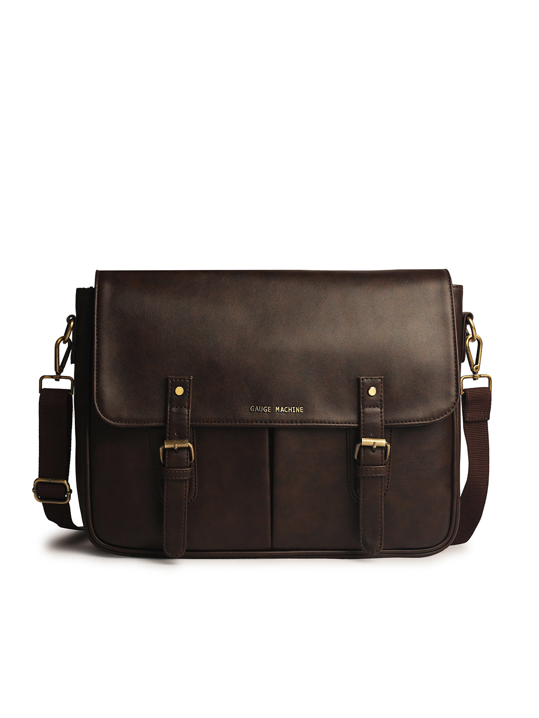 The main deep compartment of the bag can hold your daily screen widgets, essential items and food and water supplies with utmost comfortability in your daily walk-to-work lifestyle. The Gauge Machine 16" Brown Laptop Bag also have two front pocket and comes with detachable straps.